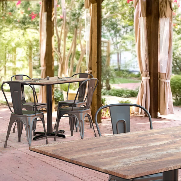 LT&S Excalibur Lancaster Table & Seating Excalibur 27 1/2″ X 47 3/16″ Rectangular Dining Height Table With Textured Yukon Oak Finish And Cross Base Plate
