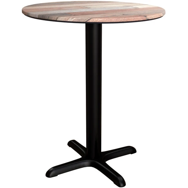 LT&S Excalibur Lancaster Table & Seating Excalibur 31 1/2″ Round Dining Height Table With Textured Mixed Plank Finish And Cross Base Plate