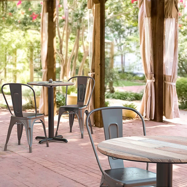 BFM Seating Barnegat 24″ Round Black Steel Outdoor / Indoor Dining Height Table