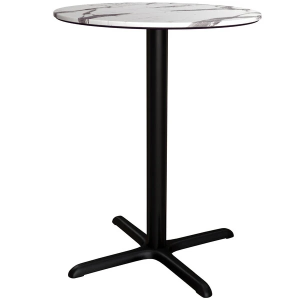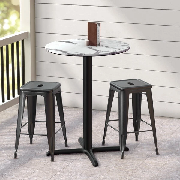 BFM Seating Barnegat 24″ Round Black Steel Outdoor / Indoor Dining Height Table