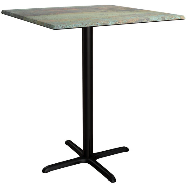 LT&S Excalibur Lancaster Table & Seating Excalibur 36″ X 36″ Square Bar Height Table With Textured Canyon Painted Metal Finish And Cross Base Plate