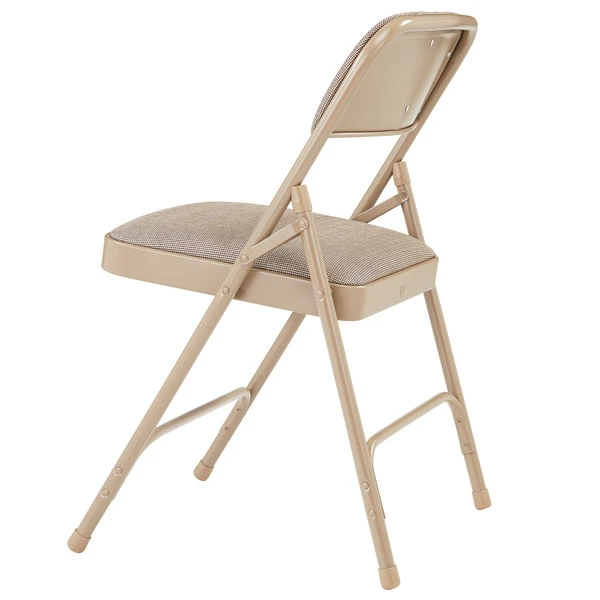 National Public Seating 2201 Beige Metal Folding Chair With 1 1/4″ Cafe Beige Fabric Padded Seat
