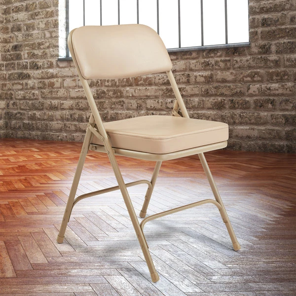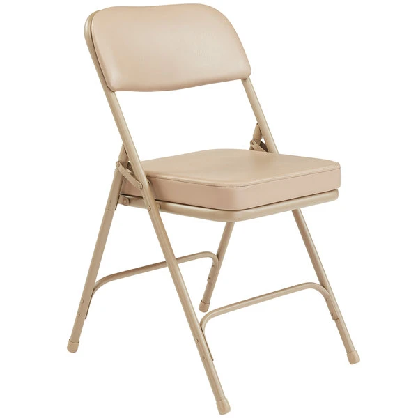 National Public Seating 3201 Beige Steel Folding Chair With 2″ Beige Vinyl Padded Back And Seat