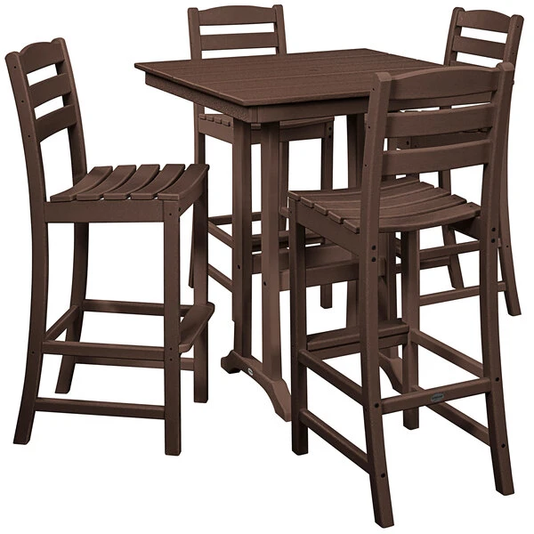 POLYWOOD La Casa Cafe 37″ X 37″ Mahogany Farmhouse Trestle 5-Piece Bar Set