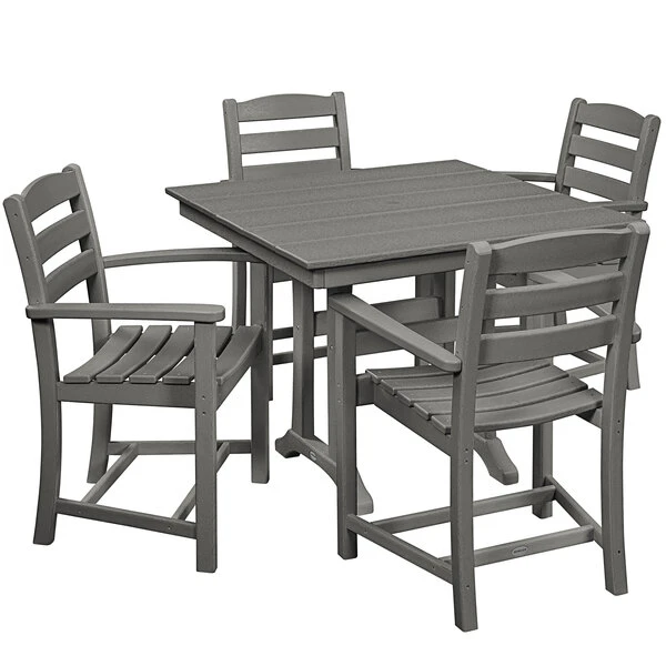 POLYWOOD La Casa Cafe 37″ X 37″ Slate Grey Farmhouse Trestle 5-Piece Arm Chair Dining Set