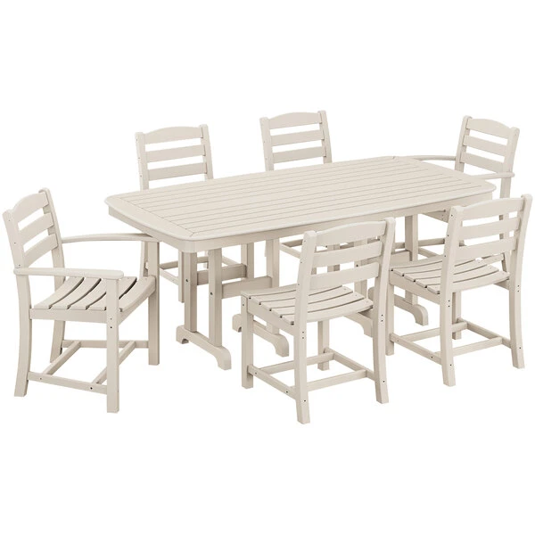 POLYWOOD La Casa Cafe 7-Piece Sand Dining Set With Nautical Table