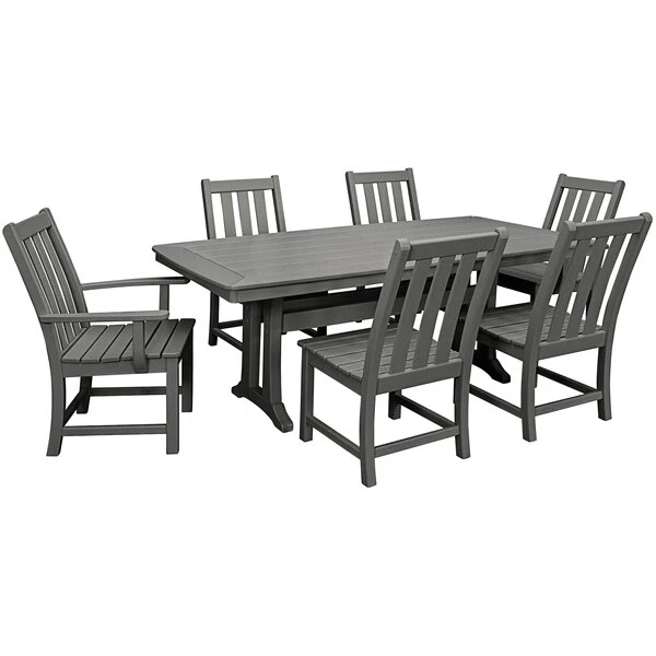 POLYWOOD Vineyard 7-Piece Slate Grey Dining Set With Nautical Trestle Table, 2 Arm Chairs, And 4 Side Chairs