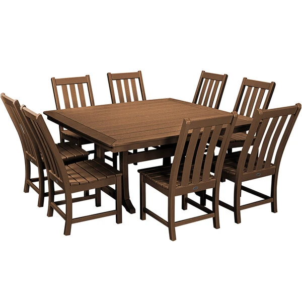 POLYWOOD Vineyard 9-Piece Teak Dining Set With Nautical Trestle Table