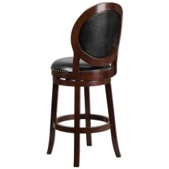 Flash Furniture TA-61029-CA-GG Cappuccino Wood Bar Height Panel Back Stool With Black Leather Seat