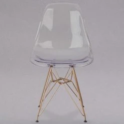 Flash Furniture FH-130-CPC1-GG Elon Series Ghost Plastic Accent Side Chair With Gold Metal Base