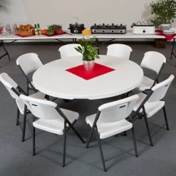 Lifetime 280301 60″ Round White Granite Plastic Nesting Folding Table