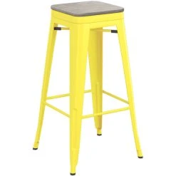 LT&S Alloy Series Lancaster Table & Seating Alloy Series Yellow Stackable Metal Indoor Industrial Barstool With Gray Wood Seat