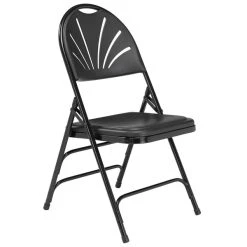 National Public Seating 1310 Black Metal Folding Chair With 1 1/4″ Caviar Black Vinyl Padded Seat