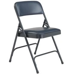 National Public Seating 1115 Gray Metal Folding Chair With Dark Blue Plastic Seat
