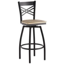 Lancaster Table & Seating Black Finish Cross Back Swivel Bar Stool With Black Wood Seat