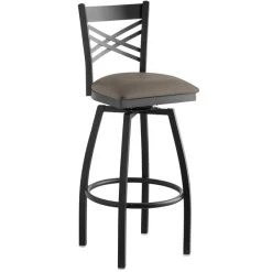 Lancaster Table & Seating Black Finish Cross Back Swivel Bar Stool With Driftwood Seat