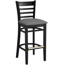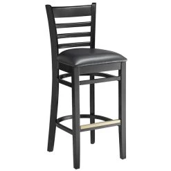 Lancaster Table & Seating Black Ladder Back Bar Height Chair With Black Padded Seat