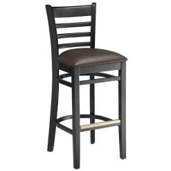 Lancaster Table & Seating Black Ladder Back Bar Height Chair With Dark Brown Padded Seat