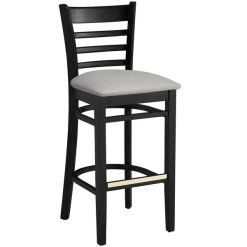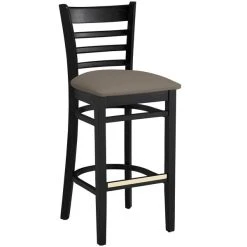 Lancaster Table & Seating Black Finish Wooden Ladder Back Bar Height Chair With Taupe Padded Seat