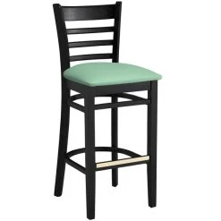 Lancaster Table & Seating Black Finish Wooden Ladder Back Bar Height Chair With Seafoam Padded Seat