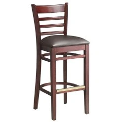 Lancaster Table & Seating Mahogany Ladder Back Bar Height Chair With Light Brown Padded Seat