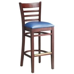 Lancaster Table & Seating Mahogany Ladder Back Bar Height Chair With Navy Padded Seat