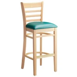 Lancaster Table & Seating Natural Ladder Back Bar Height Chair With 2 1/2″ Green Padded Seat