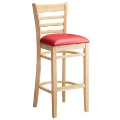 Lancaster Table & Seating Natural Ladder Back Bar Height Chair With 2 1/2″ Red Padded Seat