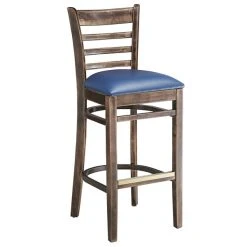 Lancaster Table & Seating Antique Copper Ladder Back Bar Height Chair With Navy Padded Seat
