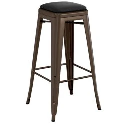 Lancaster Table & Seating Vintage Ladder Back Bar Height Chair With Dark Brown Padded Seat