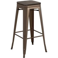 Lancaster Table & Seating Vintage Ladder Back Bar Height Chair With Black Padded Seat