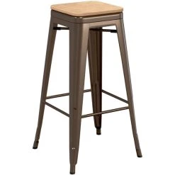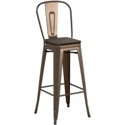 Lancaster Table & Seating Vintage Ladder Back Bar Height Chair With Light Brown Padded Seat