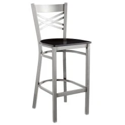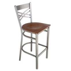 Lancaster Table & Seating Clear Coat Finish Cross Back Bar Stool With Antique Walnut Wood Seat