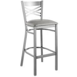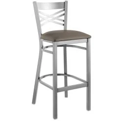 Lancaster Table & Seating Clear Coat Finish Cross Back Bar Stool With 2 1/2″ Taupe Vinyl Padded Seat