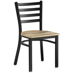 Lancaster Table & Seating Black Finish Ladder Back Chair With 2 1/2″ Light Brown Vinyl Padded Seat