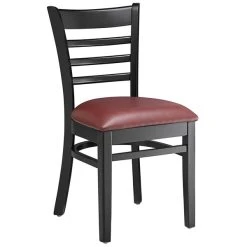 Lancaster Table & Seating Black Finish Wooden Ladder Back Chair With 2 1/2″ Burgundy Padded Seat