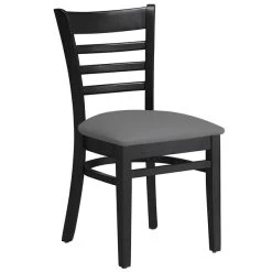 Lancaster Table & Seating Black Finish Wooden Ladder Back Chair With Light Gray Padded Seat