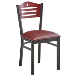 Lancaster Table & Seating Mahogany Finish Bistro Dining Chair With 1 1/2″ Burgundy Padded Seat