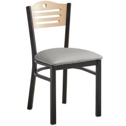 Lancaster Table & Seating Natural Finish Bistro Dining Chair With 2 1/2″ Taupe Vinyl Padded Seat