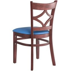 Lancaster Table & Seating Mahogany Finish Wooden Diamond Back Chair With Blue Padded Seat