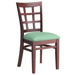 Lancaster Table & Seating Mahogany Finish Wooden Window Back Chair With Seafoam Padded Seat
