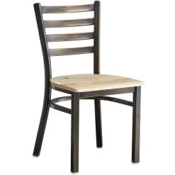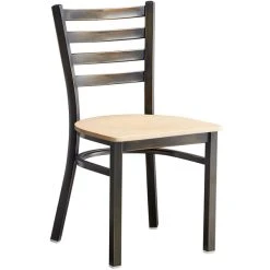 Lancaster Table & Seating Vintage Finish Wooden Ladder Back Chair With 2 1/2″ Black Padded Seat