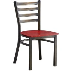 Lancaster Table & Seating Vintage Finish Wooden Ladder Back Chair With 2 1/2″ Burgundy Padded Seat